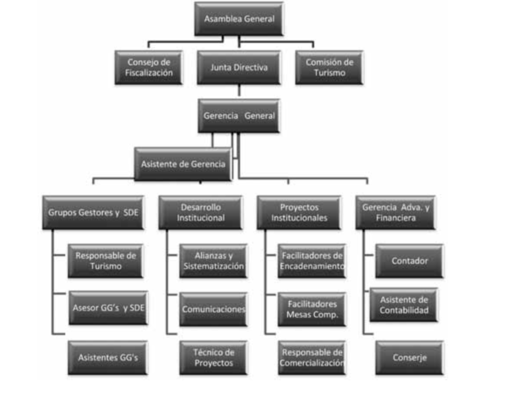 La gerencia general cuenta con un asistente que le apoya en la temática de comunicación, una función central en un sistema que opera en red, como el de los Grupos Gestores que se encuentran dispersos en casi todo el territorio nacional, y que gozan de autonomía.