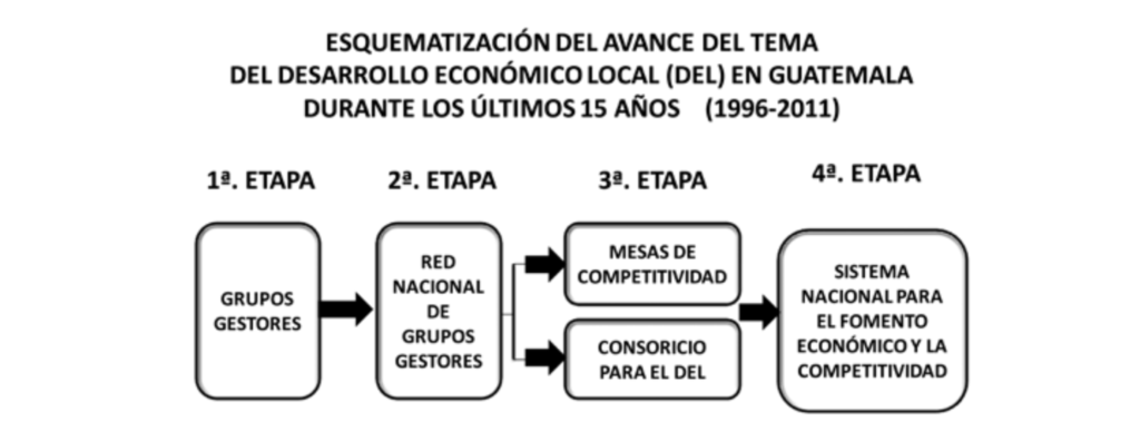 En el siguiente diagrama se esquematiza el recorrido histórico que ha seguido la implementación en Guatemala de la estrategia de desarrollo económico local.